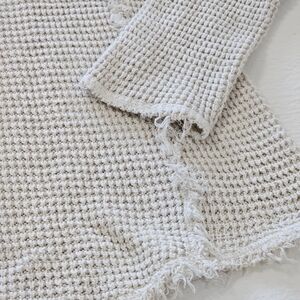 Free People Open Shoulder Waffle Knit Cream Sweater Size Large