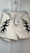 Beige high waist shorts with striking black flame design. Lace-up front for edgy style. Never been worn, small defect on the left side flame