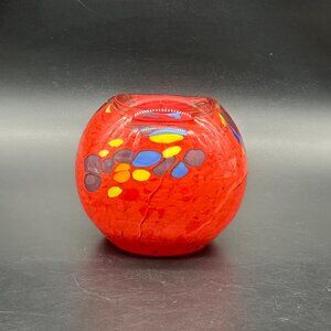 Paperweight Candle Holder Bohemian Art Glass Handmade Red Rainbow Czech READ