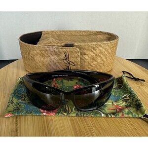 RARE Authentic Maui Jim Offshore MJ 444-02 Sunglasses 73-17-124 Gloss Black Wrap Discontinued. Made in Japan. Comes with Maui Jim case and microfiber bag.