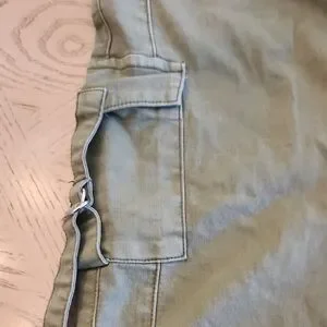 Trendy olive green jeans. Features cargo pockets. Ideal for casual wear.