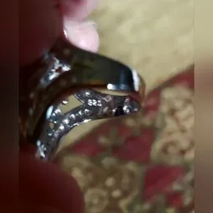 This stunning silver ring features a 4ct Tanzanite or sapphire center stone surrounded by lab simulated diamond filigree, only worn to try on and photo, comes with box, JTV, size 7, perfect for adding a touch of elegance to any outfit.