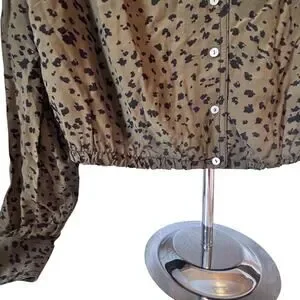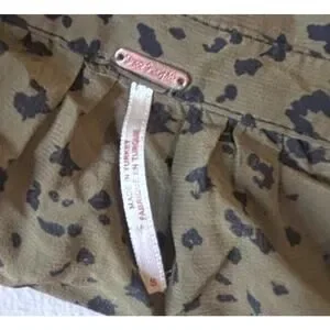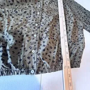 Free People Wishing Well Green Black Cheetah Crop Button Up Blouse Women SMALL