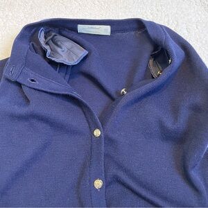Navy Cardigan Gold Button Crew Neck