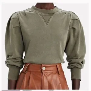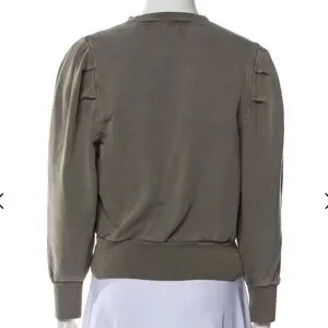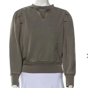 Frame Denim Shirred Olive Green Crew Neck Sweater, XS