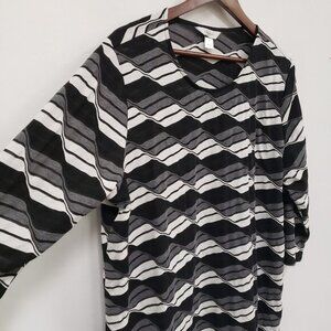 CJ Banks Womens Artsy Geometric Top 2X Black Office Mature Business Casual Work