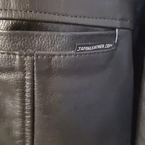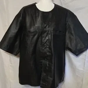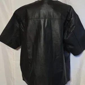 Sleek black leather jacket with short sleeves. Excellent condition, like new.