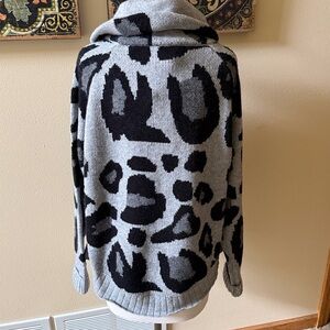 NWT size medium rain + rose gray & black animal print cowl neck sweater. Cowl is animal print on outside and solid light gray on the inside - can be worn/styled in a number of ways. Sweater is slightly oversized and very cozy. Slightly scalloped and longer in back (see last picture)