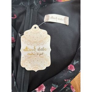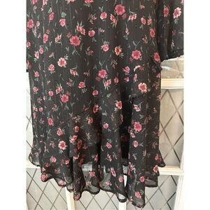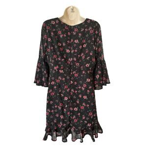 Chic mini dress with floral pattern. Features a V-neckline and flared sleeves. Perfect for casual outings. New with tags. Never worn as it’s a bit small for me. Please see photos for condition and measurements. Everything comes from our own smoke-free, poodle friendly closets and home. Please ask if you have any questions.