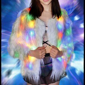 LED White Faux Fur Shaggy Rave Coat Jacket NWT