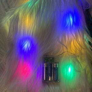 Make a bold statement with the LED Faux Fur Jacket, featuring soft white faux fur material and vibrant color-changing lights for a truly unique look. Perfect for festivals, raves, parties, or standing out in any crowd, this jacket combines comfort and eye-catching style. Lined, hook/eye closures, side pockets, interior battery packs for LED lights run on AA batteries. Runs small, size up.
