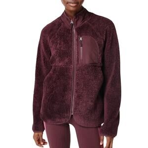Sweaty Betty Pennine Fleece Jacket Full Zip Through Sherpa Teddy Maroon Red