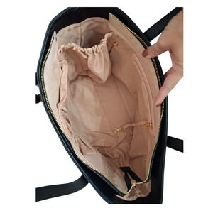 Tote is in excellent used condition, no signs of wear. Features two interior cupholders. One fits your 30oz cup with a handle as well as your standard tumblers and water bottles, includes removable padded 16" laptop sleeve with exterior pocket, removable adjustable shoulder strap, interior water bottle pockets, zipper pocket, key leash, two lipstick pockets and additional slide pockets