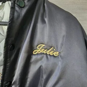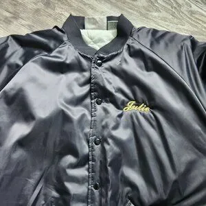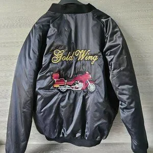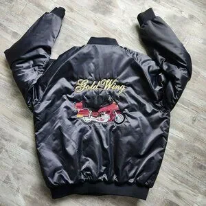 80s / 90s Black Satin Bomber Jacket Goldwing Embroidered Cardinal XL Nylon & Polyester