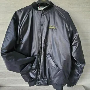 Vintage 90s Black Satin Bomber Jacket Moto Goldwing Graphic NAME Cardinal XL