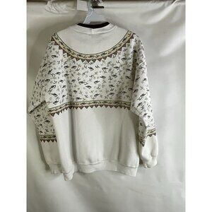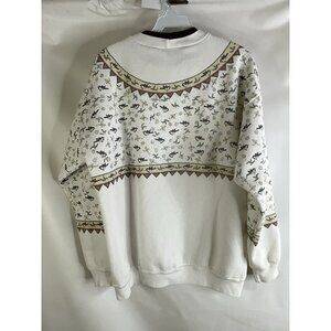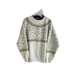 Chic Vintage sweater with intricate patterns. Soft cream base with brown accents. Perfect for cozy days.