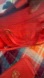 Vibrant red Coach shoulder bag with matching wallet. Gold-tone hardware accents. Stylish and functional.