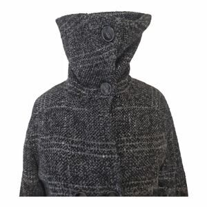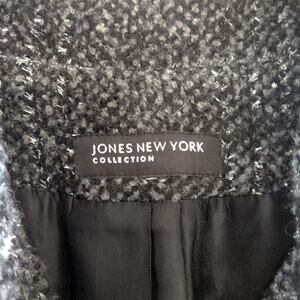 JONES NEW YORK Long Plaid Coat Double Breasted Big Collar Gray Black Outerwear