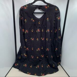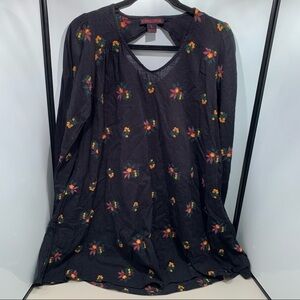 Rock & Roll Cowgirl Tunic Dress Size Large Black Floral Scoop Neck