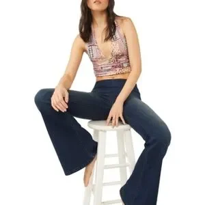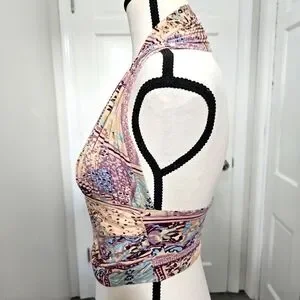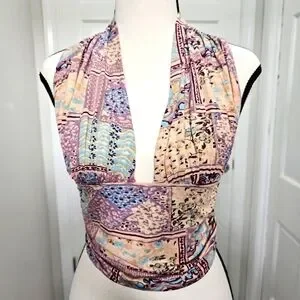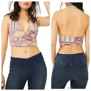 Free People Printed Heather Halter Top In Lilac Combo Size M