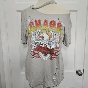 Emory Park Chaos Born Free Distressed Short Sleeve Graphic TShirt