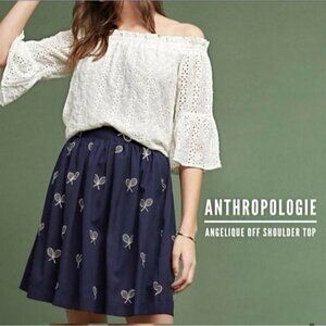 Anthropologie ✦ Floreat Angelique Blouse ✦ Off-Shoulder Eyelet ✦ White Cotton XS