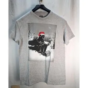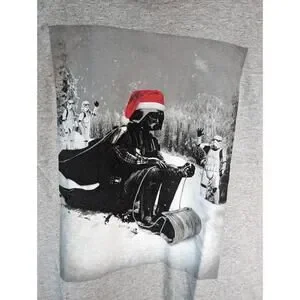 Cool Darth Vader Christmas T-Shirt. Darth out having fun on a sled in his Santa Cap. Size Men's Med. Very good condition. Light wear.