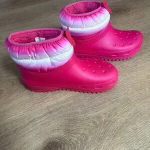 Crocs Women's 9 Classic Neo Puff Shorty Winter Boots Snow, Candy Pink Stucco EUC