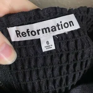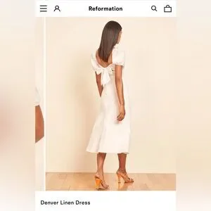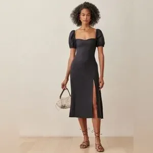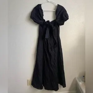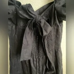 reformation denver 100% linen dress in black with puff sleeves and bow/zipper tie in back. originally $248, selling for $170. size 6.