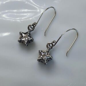 Elegant silver star-shaped dangle earrings. Beautiful design with crystal center.Perfect for any occasion. In very good condition.