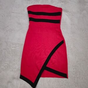 Charlotte Russe ✦ Red Strapless Bodycon Dress ✦ Drop Waist Asymmetrical Tube S