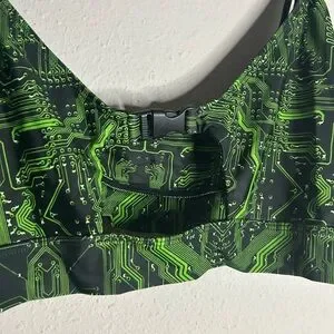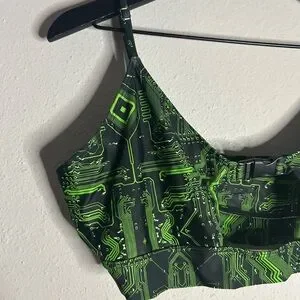 Green Matrix crop top from iHeartRaves. Bralette style. Adjustable straps. Buckle detail in front. Size 2XL. Good preowned condition with no tears, picks, or stains.