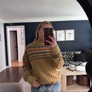 True vintage oversized mock neck sweater. No size but I am a true small and it fits me perfectly oversized. Could fit anywhere from small-large.