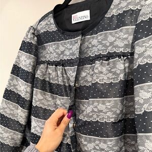 Chic Valentino jacket featuring black and white lace stripes. Ideal for stylish events. Excellent condition