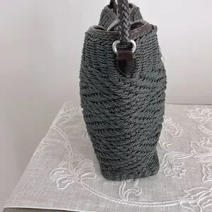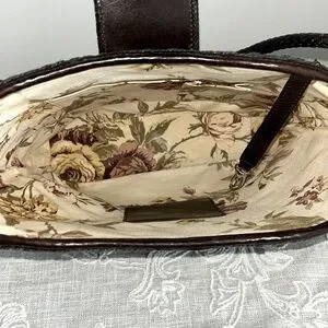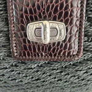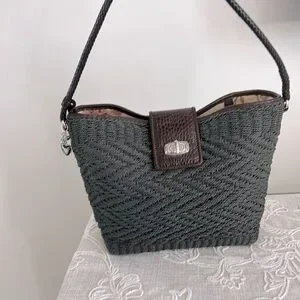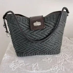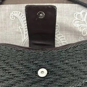Brighton EUC Raffia Green Woven/Brown Leather Shoulder Bag