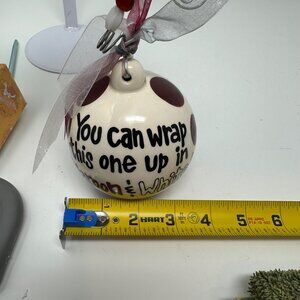 Glory Haus Mississippi State Ball Ornament. (MSU) “You Can Wrap This One Up in Maroon & White” with the bulldog Mississippi State University porcelain ball Christmas ornament. A must-have for all MSU fans!