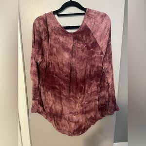 Elevate your style with this chic mauve tie-dye top from Free People. Perfect for casual outings or a relaxed day at home. Excellent Used Condition (EUC). Please see the last picture, which shows stitching coming out.