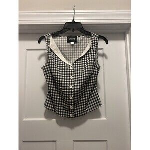 Collectif Pinup Blouse Tank Size Medium Gingham Sweetheart Retro 50s Witchy Goth