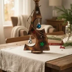 Celebrate the season with this charming wooden Christmas tree. Adorned with colorful ornaments, it adds a festive touch to any room. Perfect for creating a warm holiday atmosphere.