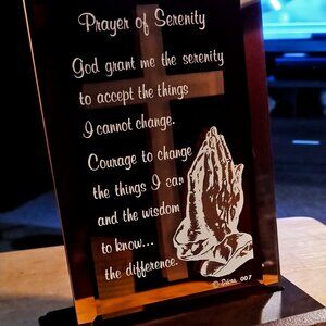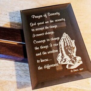 PRAYER of SERENITY Glass Table PLAQUE w/WOOD STAND