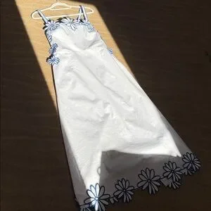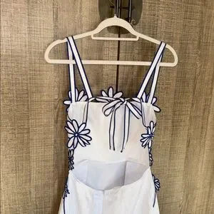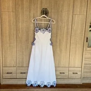Commense Semi-Sheer Floral Embroidery Back Bow Maxi Dress