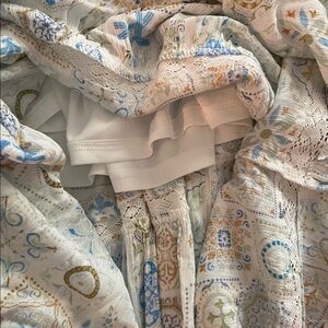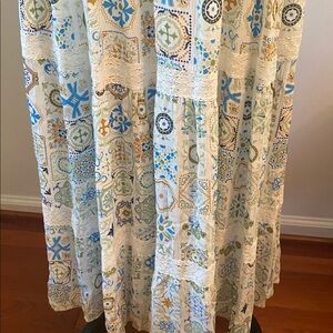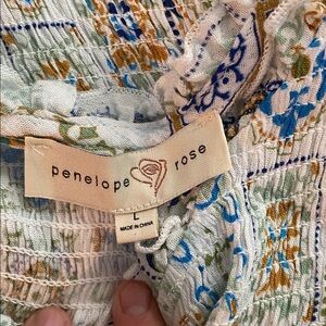 Smocked waist and bust NWT sleeveless maxi dress by Penelope Rose. I have a medium and a large left medium is 53 inches long and waistband stretchy from 14-16 inches lying flat. Pit to pit stretchy to 18inches lying flat. The large. Is an inch more room. Lined to mid thigh