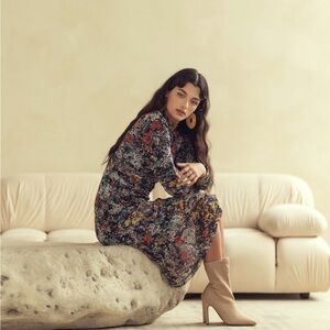 Bliss Ruched Mesh Dress Mini Floral Size L