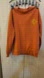Bold orange crewneck sweater by Brixton. Features floral accents on sleeve and chest. Perfect for casual wear.