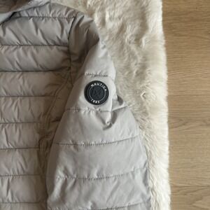 Womens Nautica Gray Silver XL Puffer Jacket Detachable Hood Fleece Pocket
