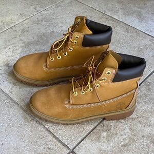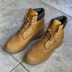 Rugged and stylish Timberland boots. Perfect for outdoor adventures. Durable and comfortable design. Size M 6.5 Junior. Used but good condition. Some scuff marks- see photos.