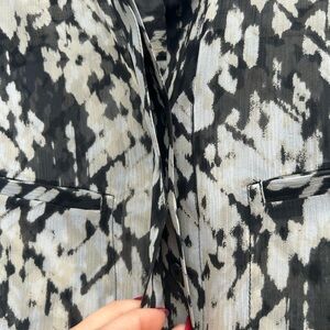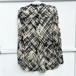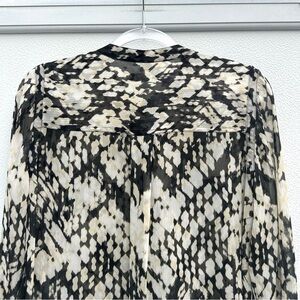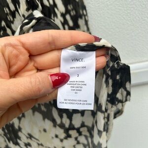 Vince Blouse Top 100% Silk Button Down Tunic Women Sz 2 Basket weave Print Sheer
