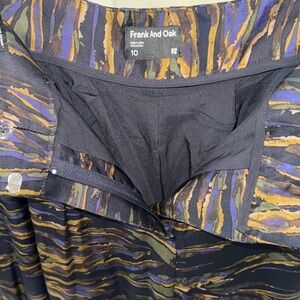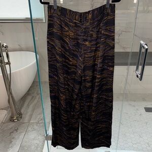 Gorgeous satin wide leg pants. Features a bold pattern. Fits small (like an 8). Super flattering. Has belt loops. Small pulled thread on right front pocket, but unnoticeable while wearing. See pictures for reference.