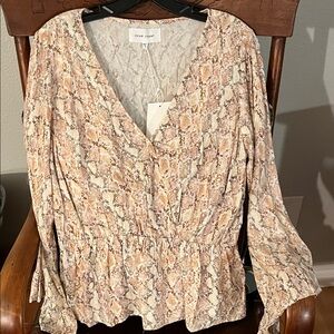 Stylish blouse with a snake pattern. Features a flattering V-neck and long sleeves. Perfect for versatile wear.