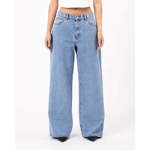 Unleash your streetwear spirit with the Gigi 95 Mid Rise Super Baggy Jeans by Abrand Jeans, perfect for a relaxed and comfortable feel. Crafted from a cotton blend (91% Cotton, 5% Viscose, 4% Polyester), these jeans feature a 10.62" mid rise waist, relaxed fit, and wide leg style. The denim is non-stretch and requires time to 'wear in', complemented by contrast tobacco stitching and bright silver metal trims. Closure: Button closure. Care: Machine wash and tumble dry.
